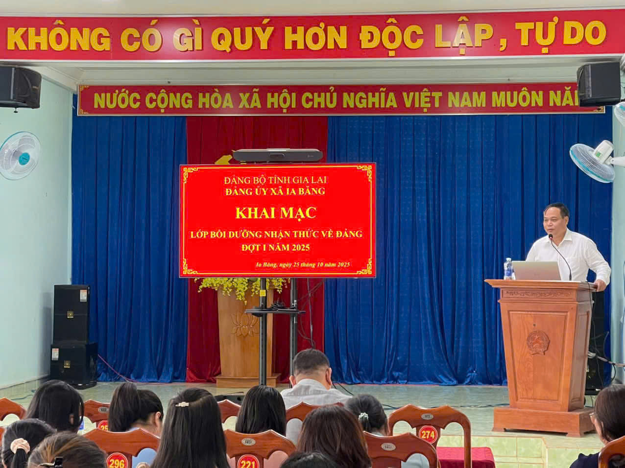 Phát biểu khai mạc lớp học, đồng chí Vũ Duy Minh – Phó Bí thư Thường trực Đảng ủy xã Ia Băng nhấn mạnh: việc tổ chức lớp bồi dưỡng nhận thức về Đảng nhằm giúp các học viên được trang bị những kiến thức cơ bản về Đảng Cộng sản Việt Nam, nắm rõ mục tiêu, lý tưởng, nguyên tắc tổ chức và hoạt động của Đảng; từ đó xác định cho mình động cơ phấn đấu vào Đảng đúng đắn, góp phần xây dựng tổ chức cơ sở Đảng ngày càng vững mạnh.