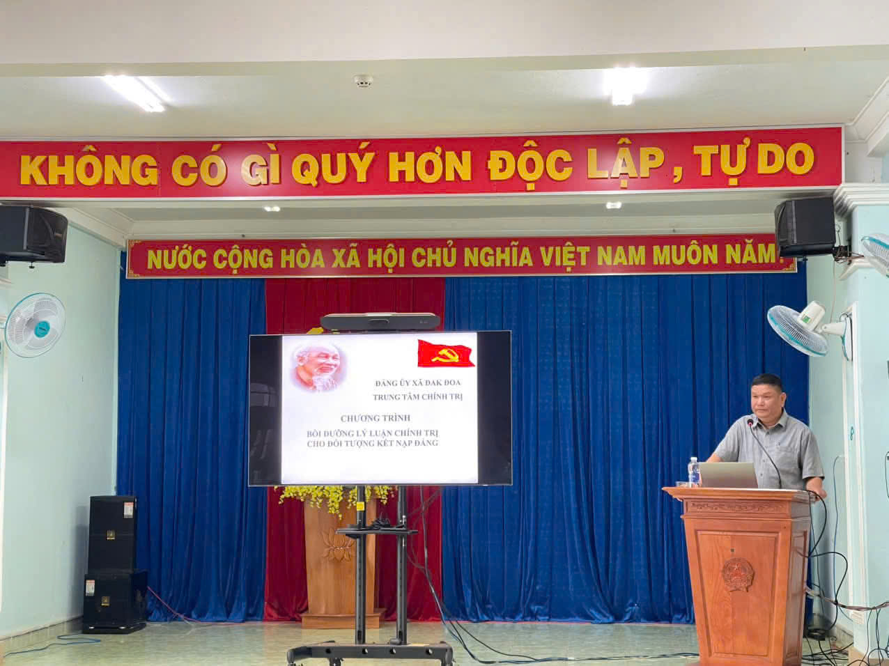 Trong thời gian 04 ngày (25/10, 26/10, 01/11 và 02/11/2025), Trung tâm Chính trị xã Đak Đoa sẽ truyền đạt 05 chuyên đề lý luận chính trị cơ bản theo chương trình dành cho đối tượng kết nạp Đảng, gồm: