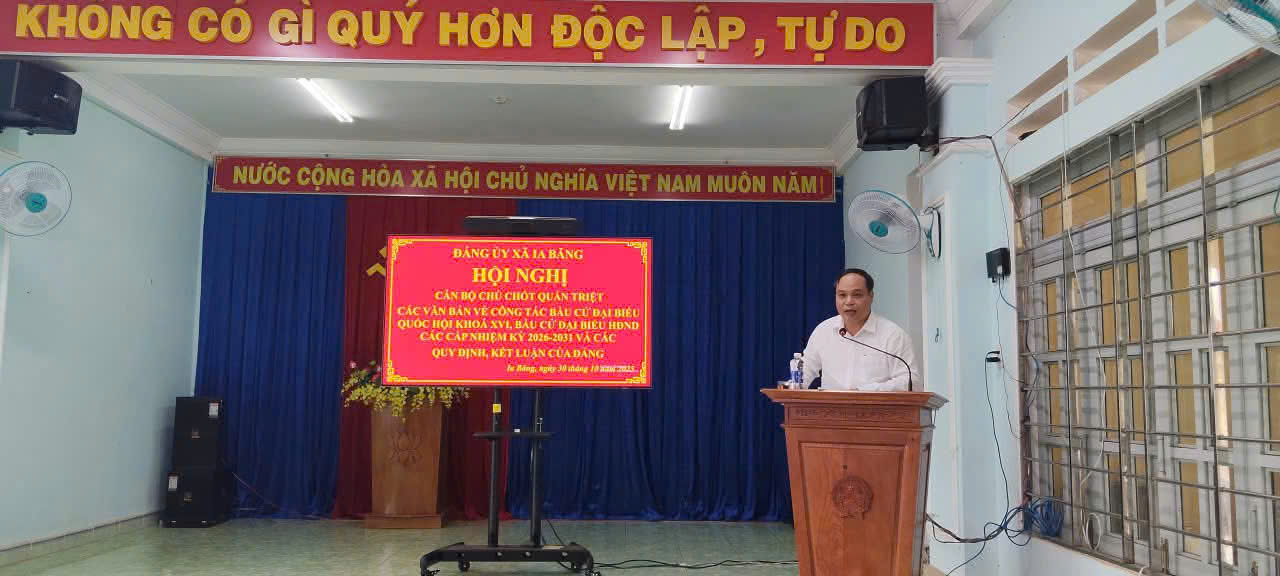 Chủ trì và báo cáo tại Hội nghị có đồng chí Y Đức Thành: Bí thư Đảng ủy, Chủ tịch HĐND xã; đồng chí Vũ Duy Minh: Phó Bí thư Thường trực Đảng ủy; đồng chí Nguyễn Trường Sinh: Phó Bí thư Đảng ủy, Chủ tịch UBND xã cùng toàn thể các đồng chí cán bộ chủ chốt của xã tham dự. Hội nghị đã được nghe quán triệt và nghiên cứu các văn bản về công tác bầu cử đại biểu Quốc hội khóa XVI, bầu cử đại biểu Hội đồng nhân dân các cấp nhiệm kỳ 2026 - 2031 và các Quy định, Kết luận của Đảng.