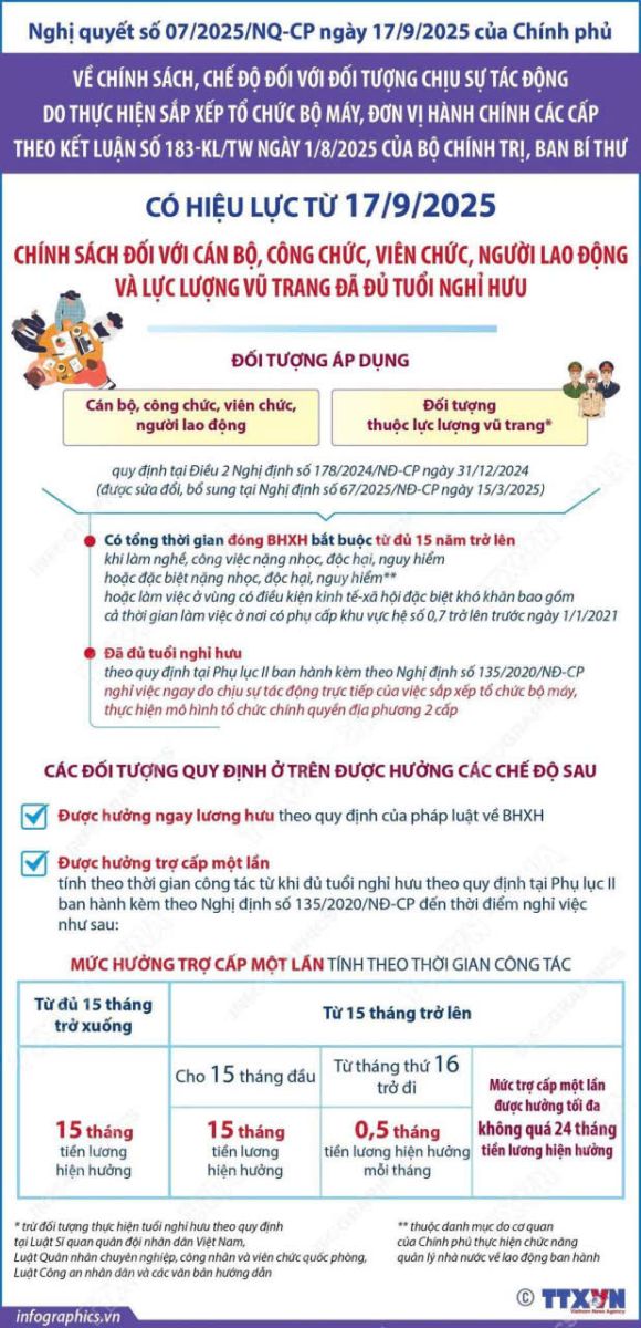 NGHỊ QUYẾT SỐ 07/2025/NQ-CP: CHÍNH SÁCH ĐỐI VỚI CÁN BỘ, CÔNG CHỨC, VIÊN CHỨC, NGƯỜI LAO ĐỘNG VÀ LỰC LƯỢNG VŨ TRANG ĐÃ ĐỦ TUỔI NGHỈ HƯU