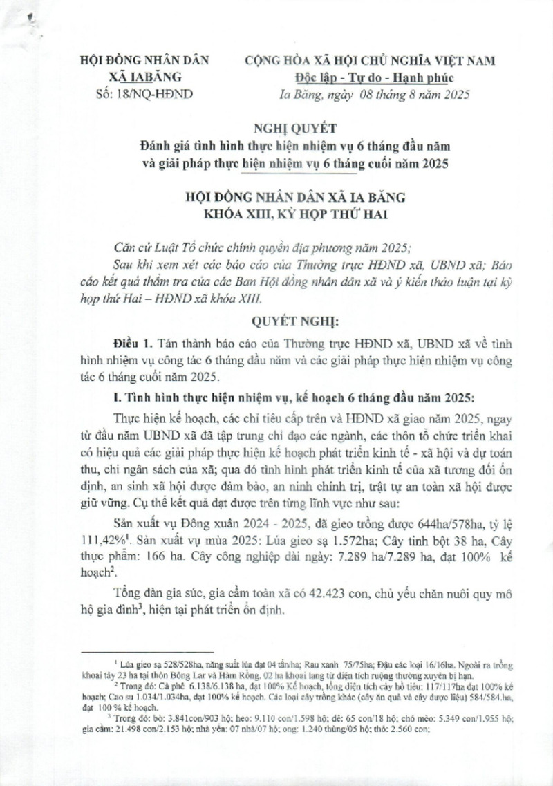 Tiêu đề văn bản | Nghị quyết đánh giá tình hình thực hiện nhiệm vụ 6 tháng đầu năm và giải pháp thực hiện 6 tháng cuối năm 2025 | ||